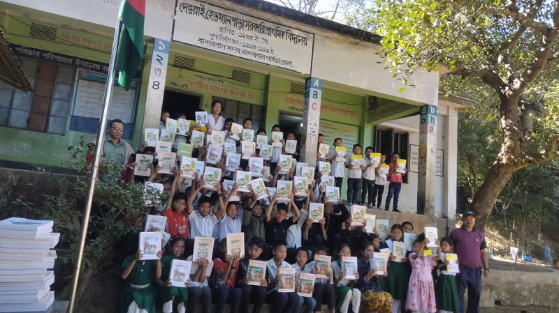 নতুন বছরের প্রথম প্রভাতেই নতুন বইয়ের মলাটের সুবাস আর শিশুদের আনন্দঘন কোলাহলে মুখরিত হয়ে উঠেছে রুমার দেওয়াই হেডম্যান পাড়া সরকারি প্রাথমিক বিদ্যালয়ের শিক্ষাঙ্গন। বৃহস্পতিবার (১ জানুয়ারি) সকাল সাড়ে ৯টায় বিদ্যালয় প্রাঙ্গণে উৎসবমুখর পরিবেশে ‘বই বিতরণ উৎসব-২০২৬’ অনুষ্ঠিত হয়। বছরের শুরুতেই হাতে ঝকঝকে নতুন পাঠ্যবই পেয়ে খুদে শিক্ষার্থীদের মাঝে সীমাহীন উচ্ছ্বাস লক্ষ্য করা গেছে। কনকনে শীত ও কুয়াশাভেজা আবহাওয়া উপেক্ষা করে সকাল থেকেই শিক্ষার্থীরা বিদ্যালয় প্রাঙ্গণে সমবেত হতে থাকে। শিক্ষকদের হাত থেকে রঙিন বই গ্রহণ করার মুহূর্তে তাদের চোখে-মুখে ফুটে ওঠে আগামীর স্বপ্ন। শিক্ষার্থীরা জানায়, নতুন বইয়ের গন্ধে তাদের পড়াশোনার প্রতি আগ্রহ বহুগুণ বেড়ে গেছে এবং তারা মনোযোগ দিয়ে লেখাপড়া করে সুনাগরিক হওয়ার প্রত্যয় ব্যক্ত করে।