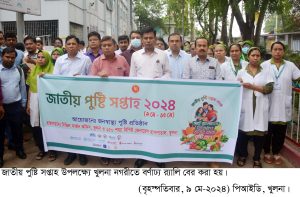 ৯ মে থেকে আগামী ১৫ মে পর্যন্ত জাতীয় পুষ্টি সপ্তাহ পালিত হবে। এর আগে সকালে খুলনা জেনারেল হাসপাতাল চত্ত্বর থেকে বর্ণাঢ্য র‌্যালি শুরু হয়ে বিভিন্ন সড়ক প্রদক্ষিণ করে একই স্থানে এসে শেষ হয়। র‌্যালিতে চিকিৎসক, নার্স ও বিভিন্ন এনজিও প্রতিনিধিরা অংশগ্রহণ করেন।