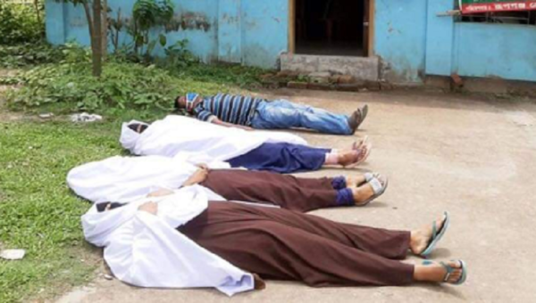 থানায় মামলা নেয়নি বলে কাফনের কাপড় পরে প্রেসক্লাবের সামনে শুয়ে পড়লো।