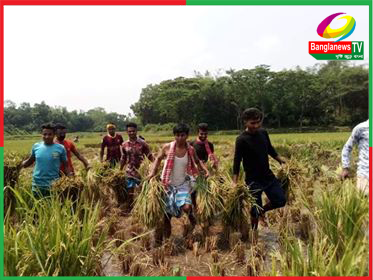 কাওরাইদে ইউনিয়ন যুবলীগের সভাপতির নেতৃত্তে কৃষকের ধান কর্তন।