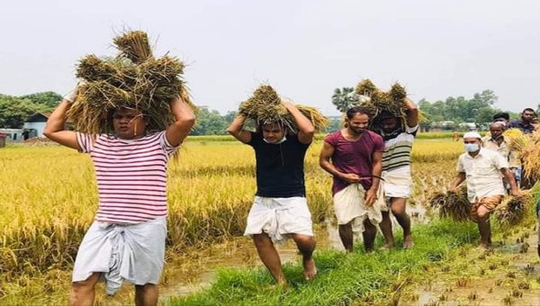 গরীব নারীকৃষক এর ধানকেটে ঘরে পৌঁছে দিলেন জেলাছাত্রলীগ