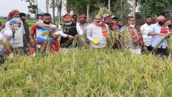 বগুড়ার ধুনটে স্বেচ্ছাশ্রমে ধান কেটে দিলো কৃষকলীগ নেতারা
