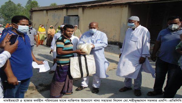 নওগাঁর ধামইরহাটে শহীদুজ্জামান এমপির উদ্যোগে খাদ্য সহায়তা প্রদান