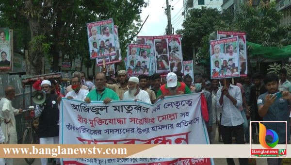 ভাঙ্গায় বীর মুক্তিযোদ্ধা সরোয়ার মোল্লা ও তার পরিবারের উপর সন্ত্রাসী হামলার প্রতিবাদে মানববন্ধন