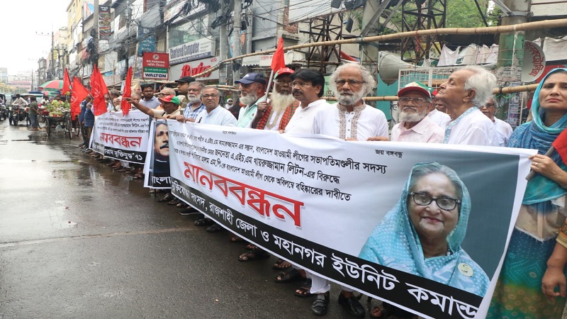 শাহরিয়ার আলম এমপিকে আওয়ামী লীগ থেকে অবিলম্বে ব’হি’ষ্কা’রের দাবিতে রাজশাহীতে মুক্তিযোদ্ধাদের মানববন্ধন