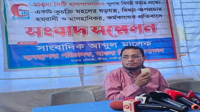 শ্রীপুরে মাওনা সিটি হাসপাতালের বি’রু’দ্ধে অ’প’প্র’চা’রে’র প্রতি’বাদে সংবাদ সম্মেলন