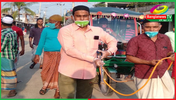শ্রীপুরে উমেদ আলী নিজ উদ্যোগে জীবাণুনাশক স্প্রে করেছেন