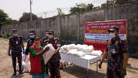 সীমান্তে ৪৯,বিজিবি #৩৯;র পক্ষ থেকে ৩০০ দুঃস্থ পরিবারের মাঝে খাদ্য সামগ্রী বিতরণ