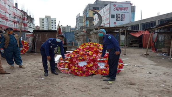 সাভার রানা প্লাজার নিহত শ্রমিকদের পুলিশের শ্রদ্ধা নিবেদন।