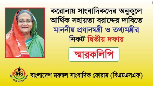 দ্বিতীয় দফায় প্রধানমন্ত্রী ও তথ্যমন্ত্রীর নিকট সাংবাদিকদের বরাদ্দের দাবিতে স্মারকলিপি”বিএমএসএফ”