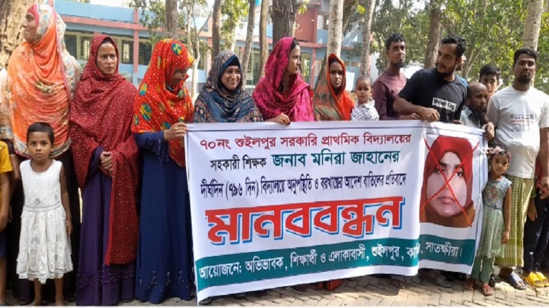 কালিগঞ্জে শুইপুর প্রাথমিক বিদ্যালয়ের শিক্ষিকার বিরুদ্ধে মানববন্ধন অনুষ্ঠিত