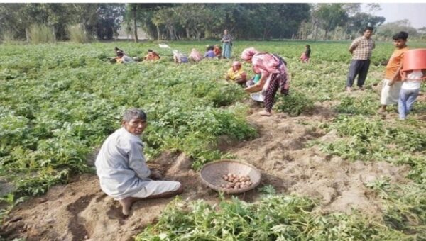 জলঢাকায় আগাম জাতের আলু উত্তোলনে ব্যস্ত কৃষকরা।