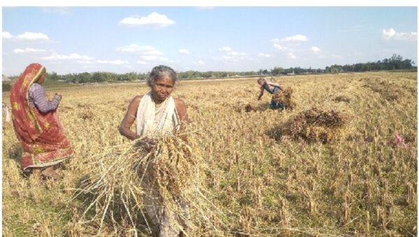 সারাদিন ধান কুড়িয়ে চলে সংসার।