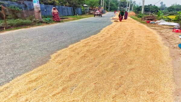 যানবাহনের ব্যস্ততার নিস্তব্ধতায় পাকা রাস্তাগুলো ব্যস্ত হয়ে পড়েছে ধান শুকাতে!