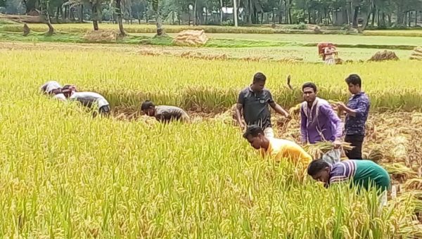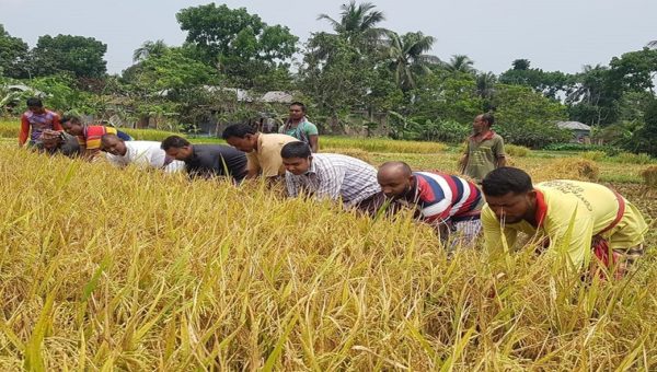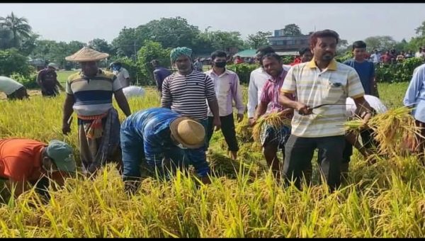 পাংশায় কৃষকলীগের কর্মীরা স্বেচ্ছা শ্রমের ভিত্তিতে কাটলেন ধান