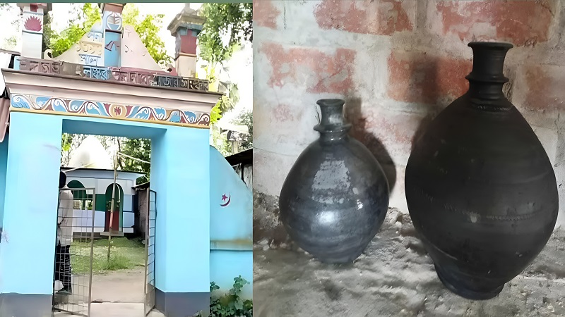 বগুড়া শিবগঞ্জে মাজারের পুকুর খননে মিললো প্রাচীন মাটির পাত্র