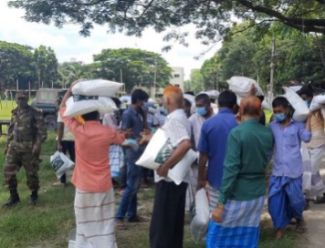 সাভারে পরিবহন শ্রমিকদের মাঝে সেনাবাহিনীর খাদ্য সামগ্রী বিতরণ