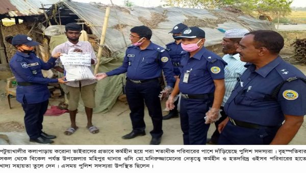 করোনা ভাইরাসের প্রভাব কলাপাড়ায় কর্মহীন হয়ে পরা শতাধীক পরিবারের পাশে দাঁড়িয়েছে পুলিশ