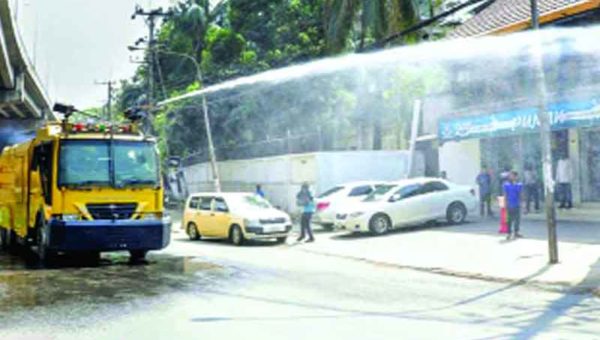 জীবাণুনাশক ছিটানো চলছে রাজধানীতে