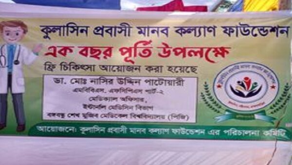 কুলাসিন প্রবাসি মানব কল্যাণ ফাউন্ডেশন এক বছর পূতি উপলক্ষে ফ্রি চিকিৎসার আয়োজন