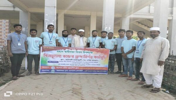 কাটাখালী রওজাতুন্নবী (সঃ) দাখিল মাদ্রাসা প্রাঙ্গণে বিনামূল্যে রক্তের গ্রুপ নির্ণয় কর্মসূচি